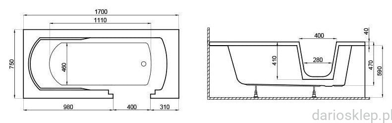 Polimat - Wanna prostokątna AVO 170x75 dla osób starszych - Darmowa dostawa !!!