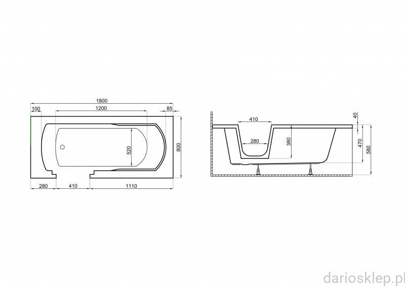 Polimat - Wanna prostokątna VOVO 180x80 dla osób starszych - Darmowa dostawa !!!