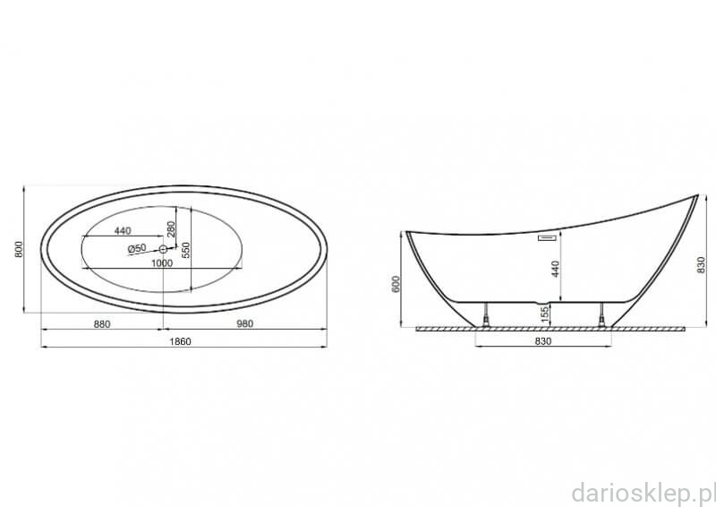 Polimat wanna wolnostojąca ZOE BIAŁA 180x80 - Darmowa Dostawa
