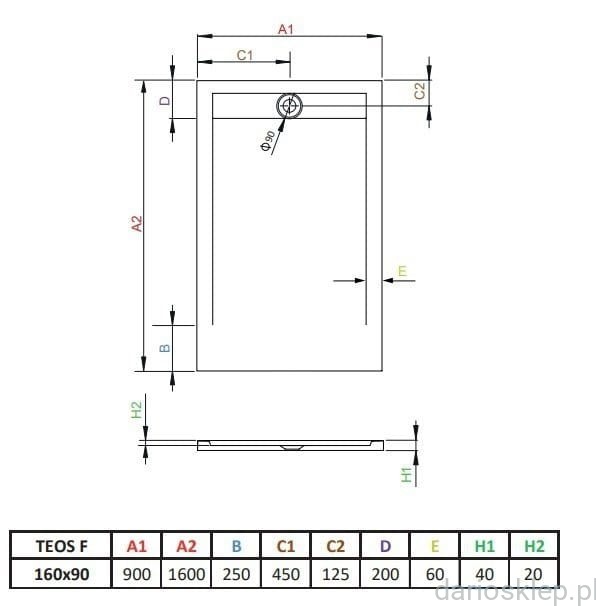 RADAWAY - TEOS F brodzik prostokątny 160x90x4 cm HTF16090-04