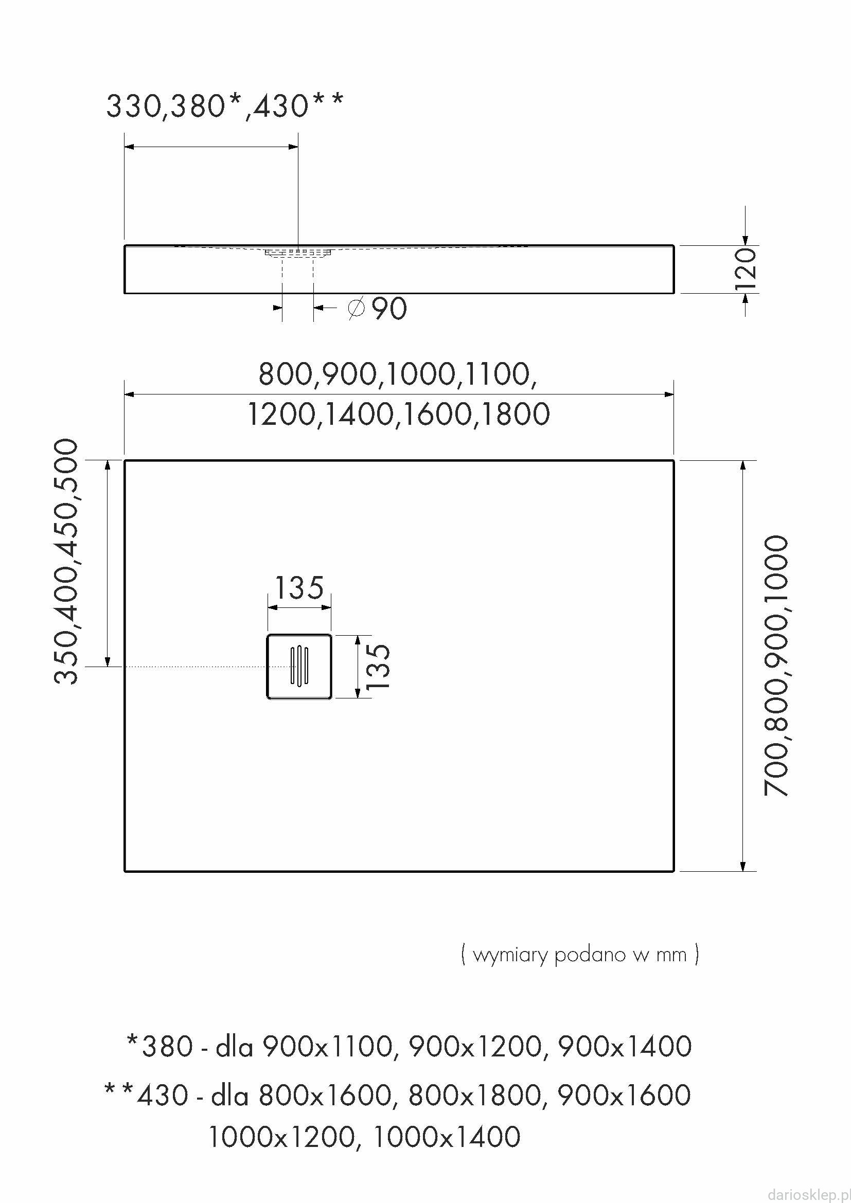 Średnica odpływu: 90mm