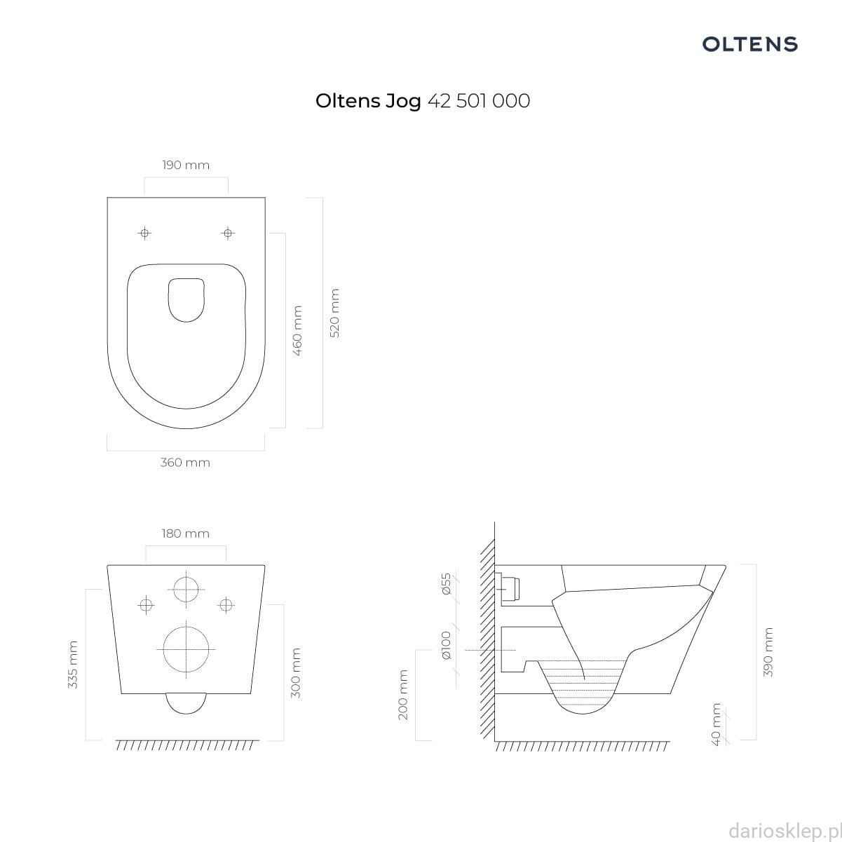 Zestaw Oltens Jog WC wisząca z powłoką Smart Clean PureRim z deską sedesową wolnoopadającą biały